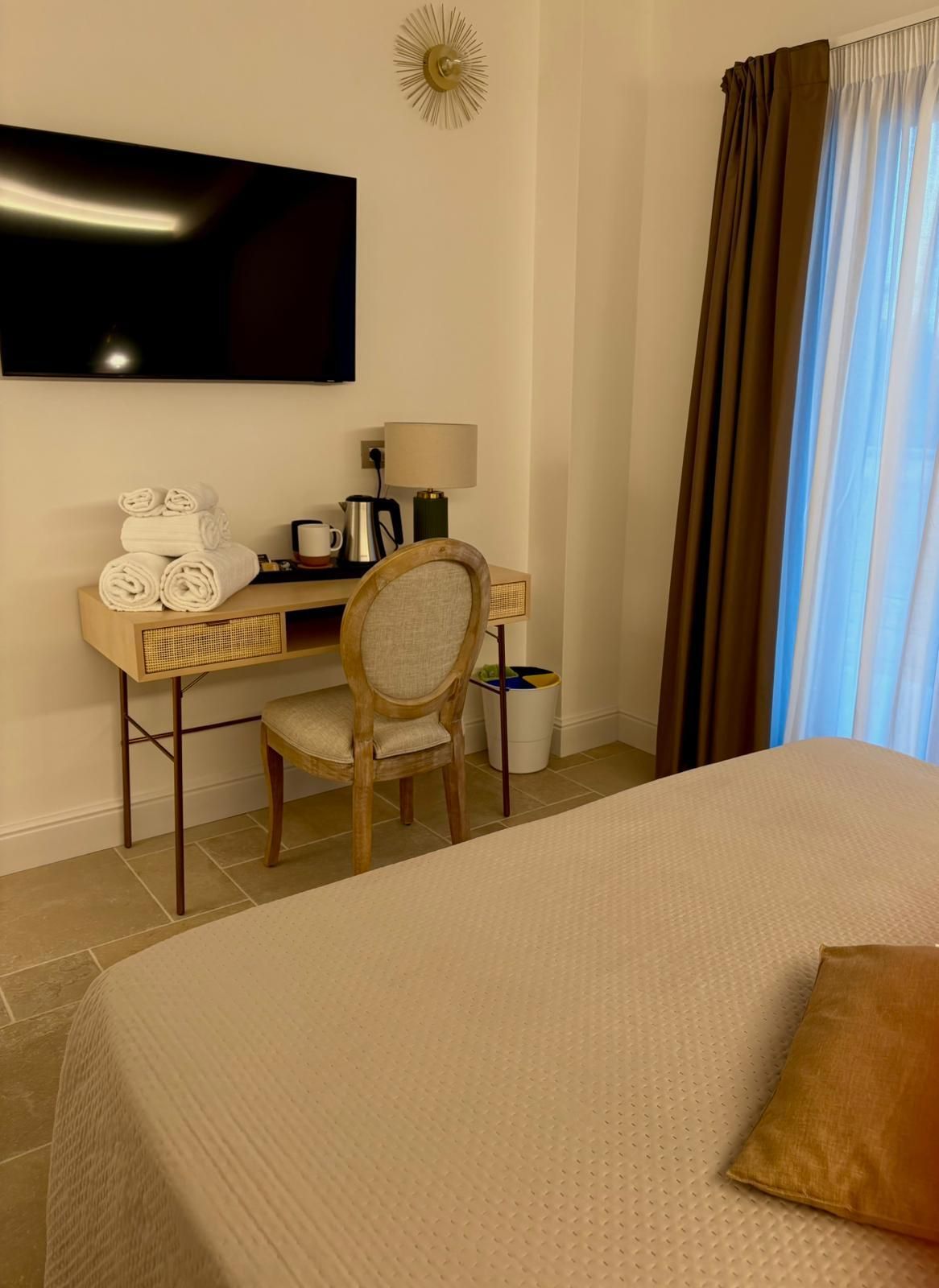 Inoltre, tutte le camere sono dotate di ogni comfort moderno, come aria condizionata, connessione Wi-Fi gratuita e TV, per garantirvi un soggiorno piacevole e rilassante. Potrete gustare la prima colazione direttamente in camera o sulla nostra terrazza panoramica, godendo della vista spettacolare degli uliveti circostanti.